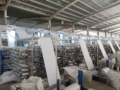 公司引進目前塑編行業中的雙曲線小凸輪坳屬于節能技術的新型圓織機、高速平膜拉絲機等設備;同時擁有高速凹版彩印機。多功能復合機組,以及全自動裁切縫底機組的生產線。